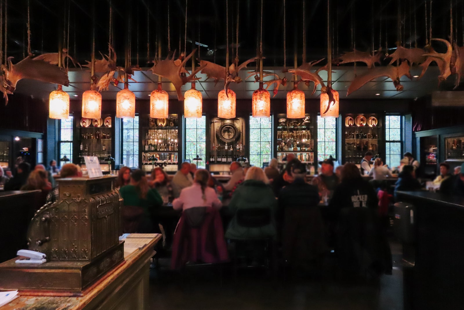 Fanny Q's is a saloon that's open for lunch and dinner and serves gastropub-style bites such as jalapeno Alaska crab dip and beer-battered Alaska cod served with tater tots. (The lodge also serves its breakfast buffet here in the mornings.) In the evenings, a piano player performs nightly, and guests gather around the bar requesting popular tunes until late.