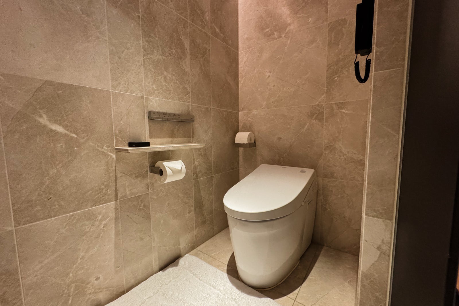 The water closet had an automated Toto toilet with all the usual functions, including a heated seat.