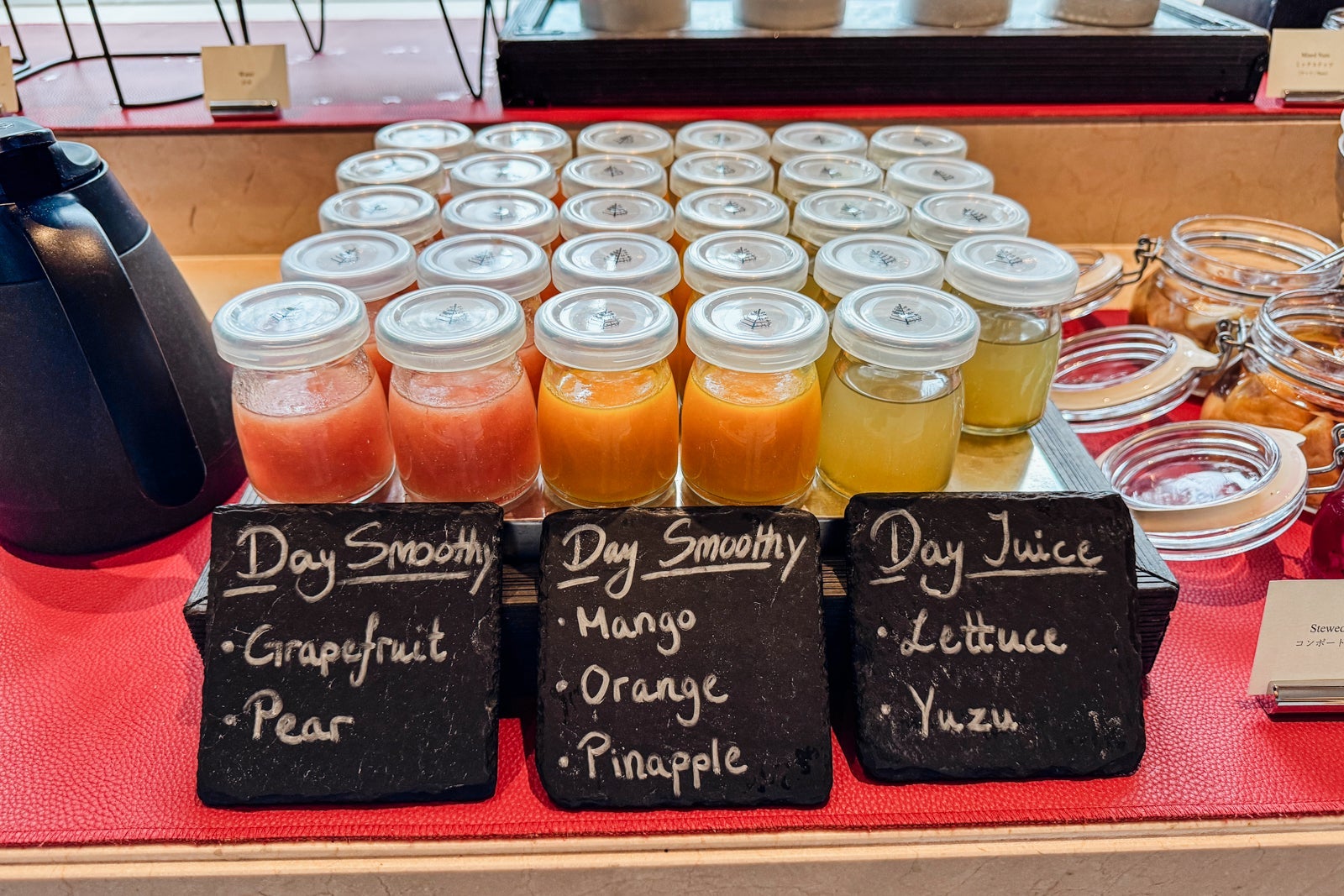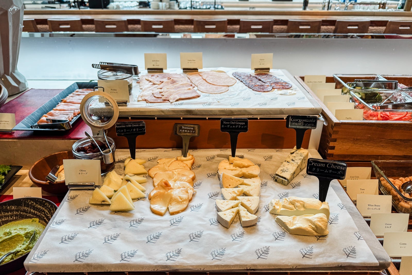 Guests can peruse the offerings along the bar. They range from sweet and savory pastries like matcha muffins and taiyaki waffles to DIY soba, various cheeses, cold cuts, fresh fruit, yogurt and daily special smoothies (the yuzu lettuce one was surprisingly refreshing).