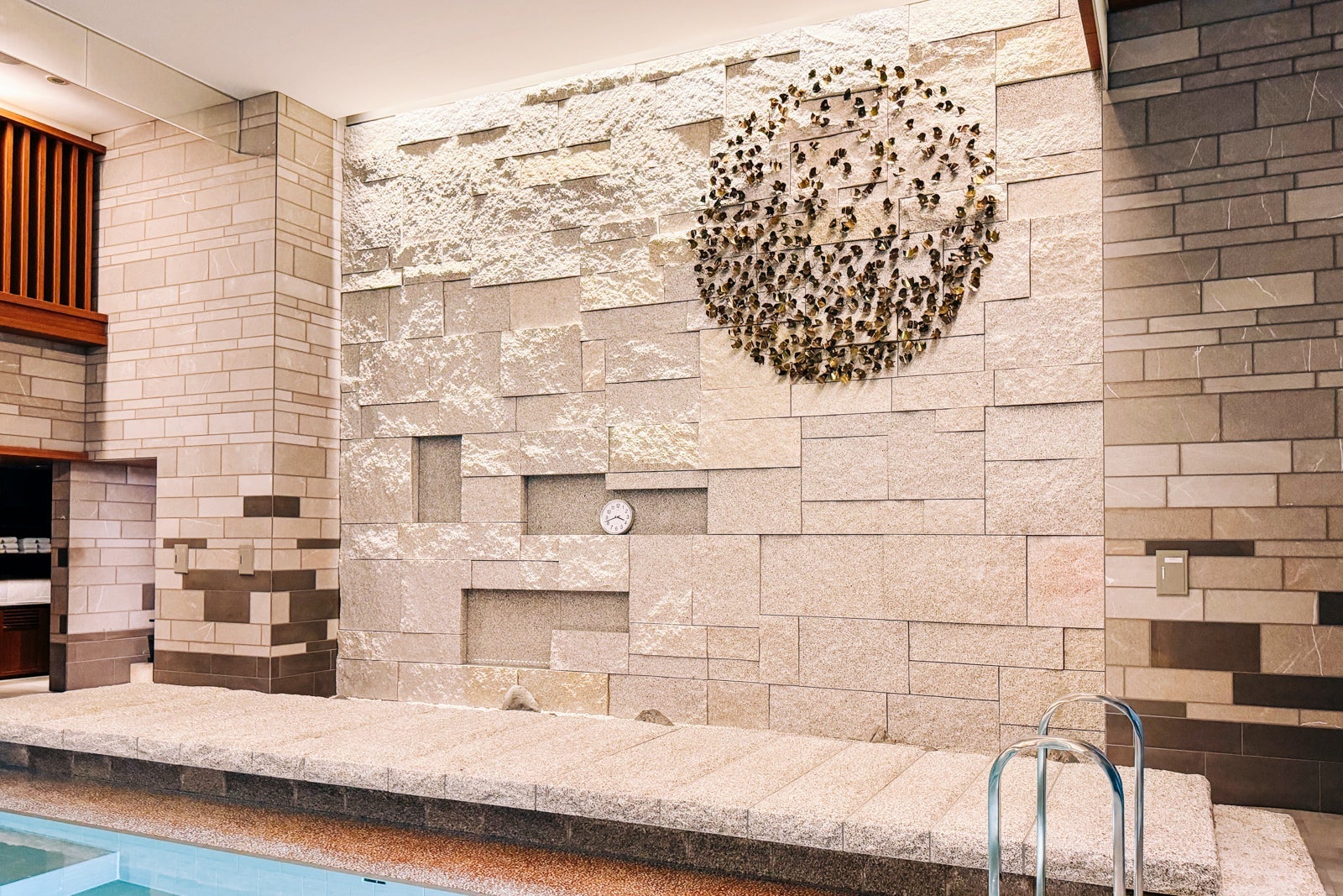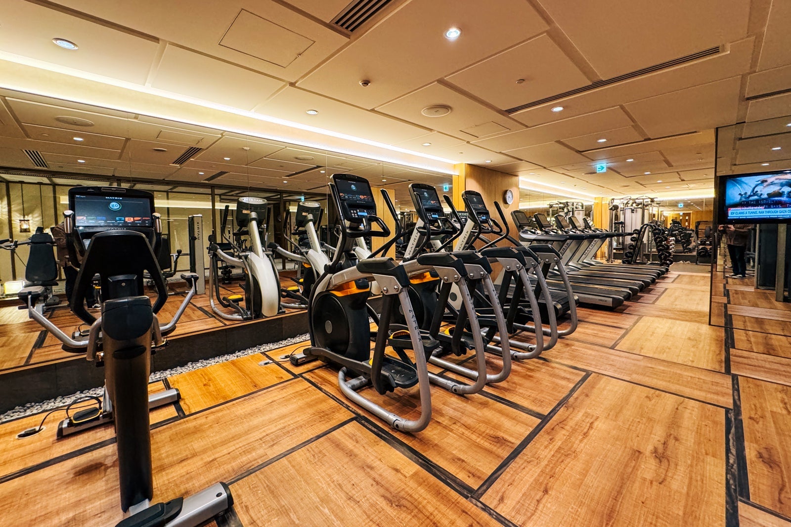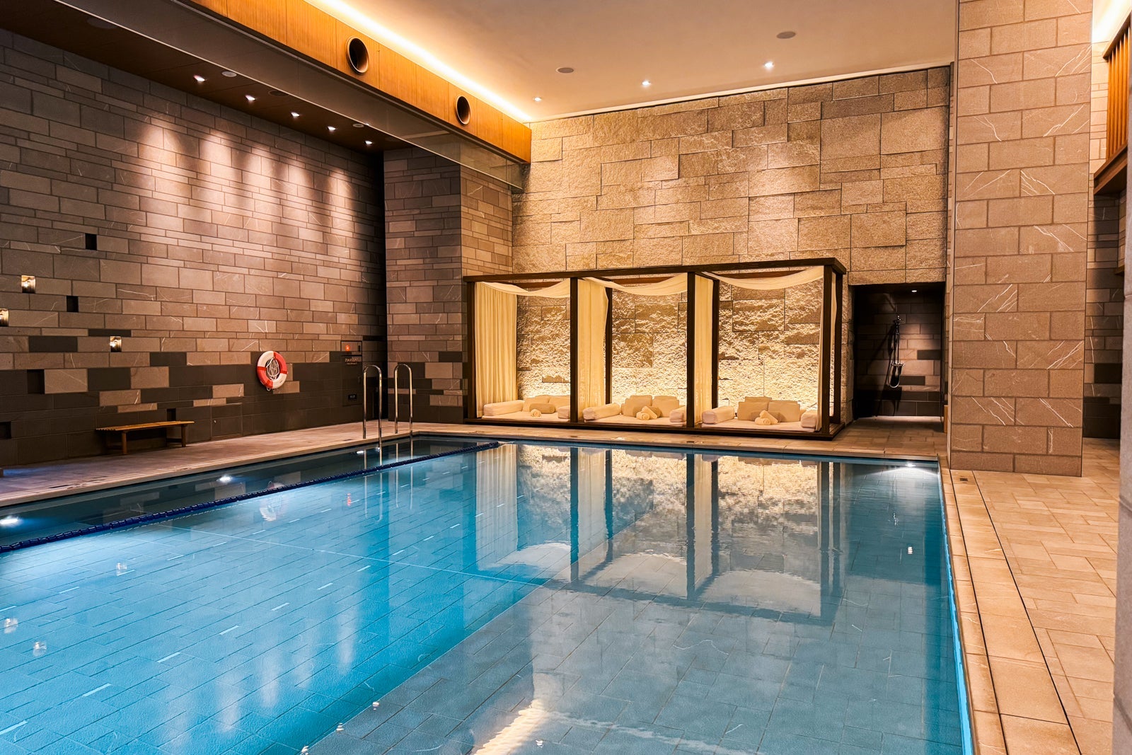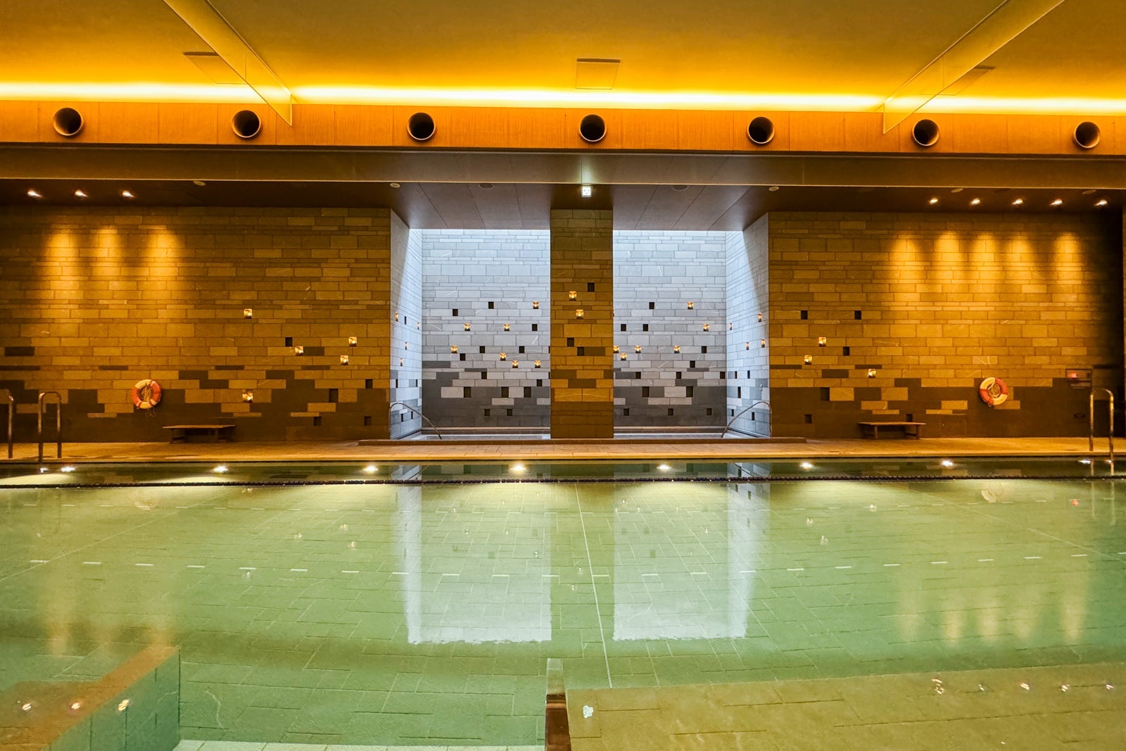 Its wellness complex, meanwhile, occupies two floors (B1 and B2). On one level, the expansive gym is equipped with Matrix cardio equipment, various weight machines and free weights, and a stretching and yoga studio. There are men's and women's locker rooms with bathrooms, showers, white-granite ofuros alongside traditional washing stations, steam rooms, saunas and resting areas.