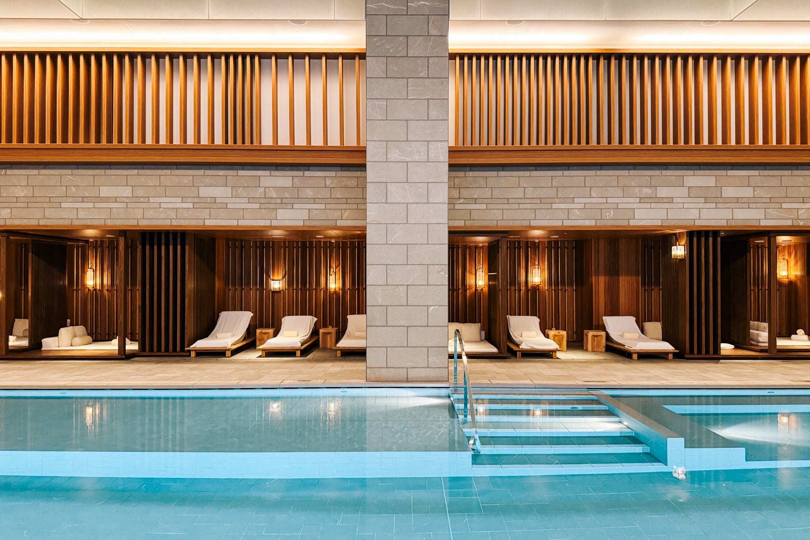 It's adjacent to the 65-foot indoor pool, which is a cavernous but beautifully lit space tiled in gray granite. It features plenty of loungers and daybeds, plus jacuzzis set under skylights for some natural illumination.
