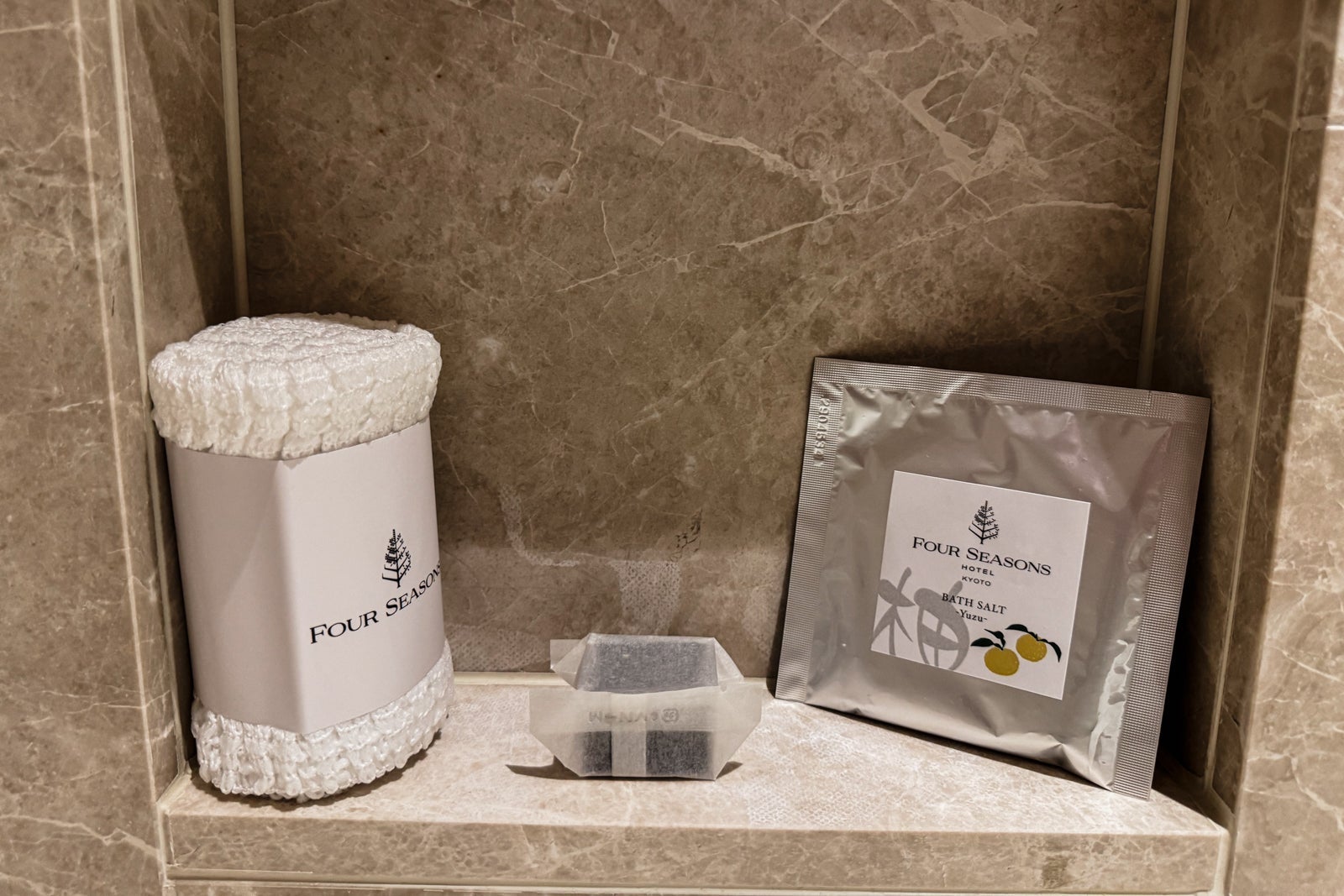 The bathtub was rectangular and quite deep, with its own handheld spigot. It had both a bar of soap and a cloth for scrubbing yourself as well as sachets of yuzu-scented bath salts for a relaxing soak.