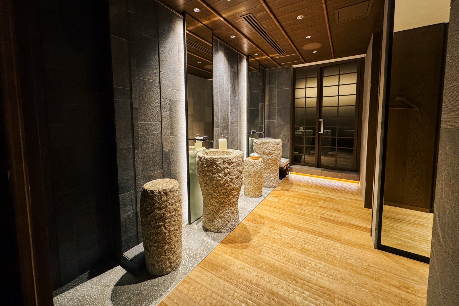 Up one level, the salon and spa have their own set of full locker rooms with the same amenities. The spa has just seven treatment rooms with decor inspired by Kyoto's traditional machiyas or wooden townhouses. The services incorporate well-known international brands like Biologique Recherche from France and the Japanese label Tatcha.