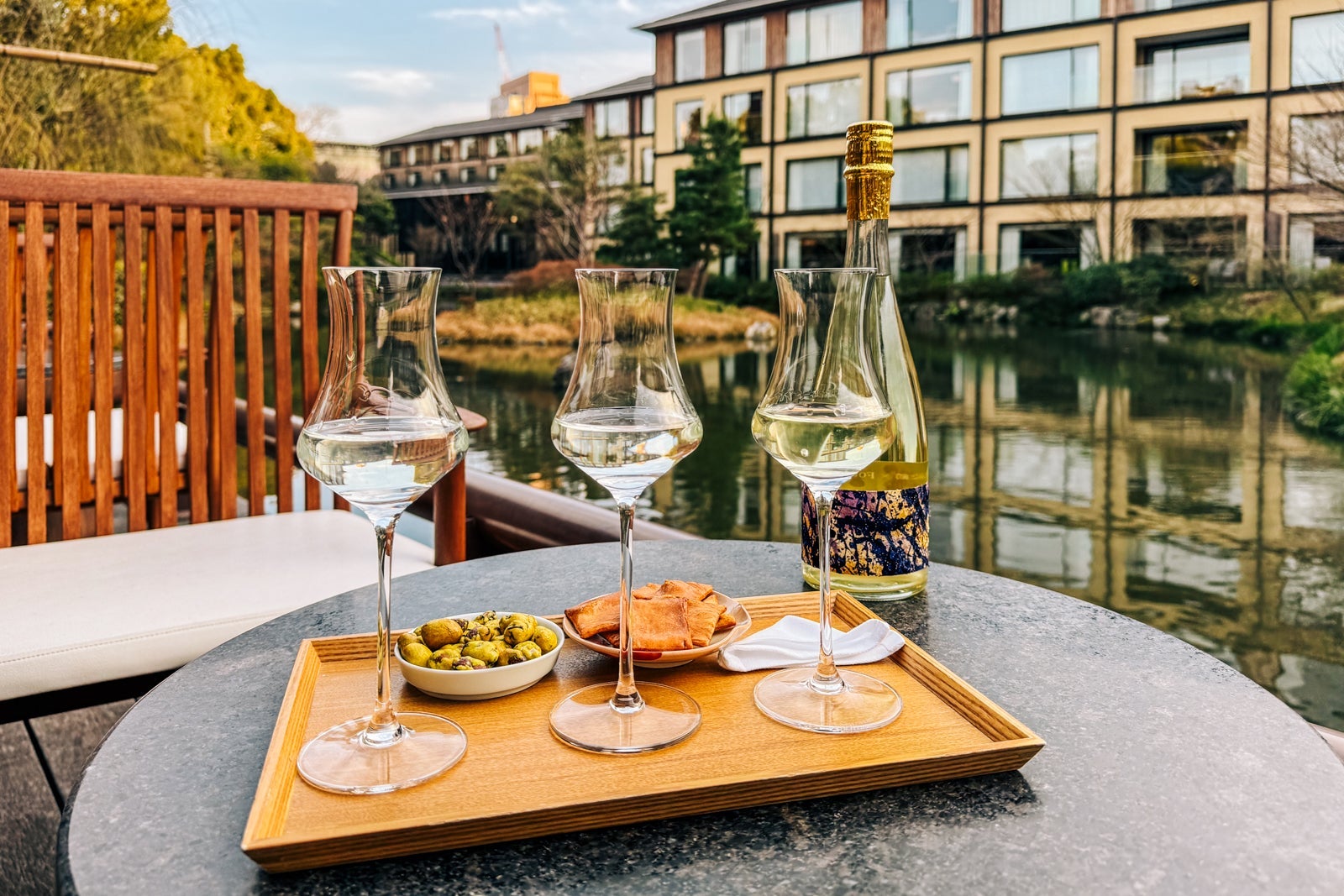 The hotel also serves afternoon tea ($44 per person) with sweets like kumquat chiffon cake and Kyoto black bean panna cotta that vary seasonally. Guests can also order Champagne and cocktails or book a private tea ceremony or a romantic private dinner experience.