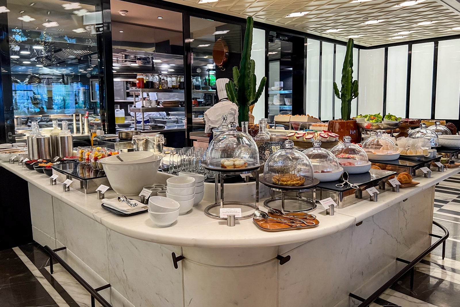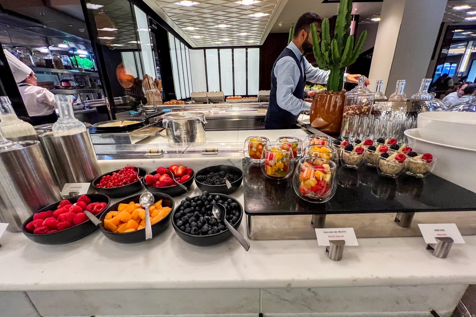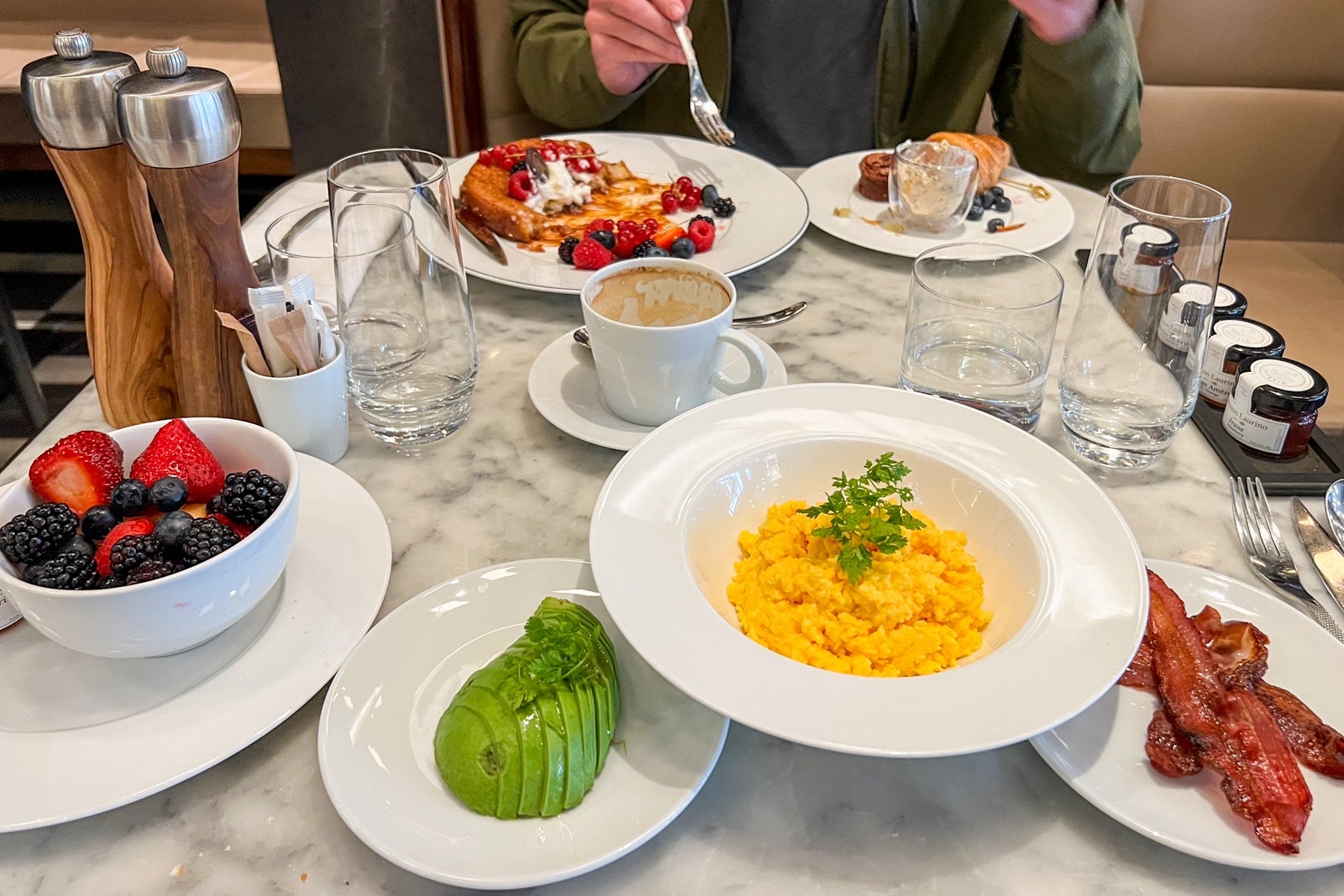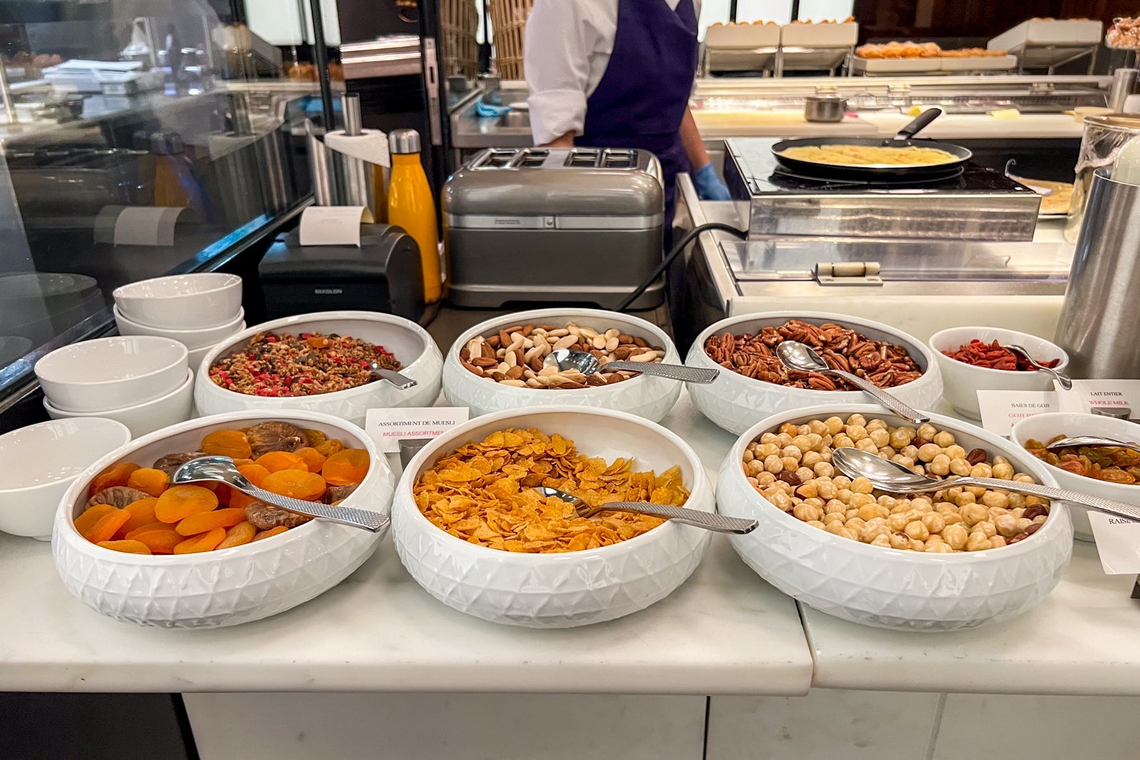 A full American breakfast (58 euros, $64) with a buffet and a choice of hot entree plus unlimited coffee and espresso drinks, tea, juice and water was included in my reservation, so I would start my days at Brasserie Lutetia with a selection of fresh pastries and fruit along with a variety of cheeses, charcuterie, smoked salmon and cereals.