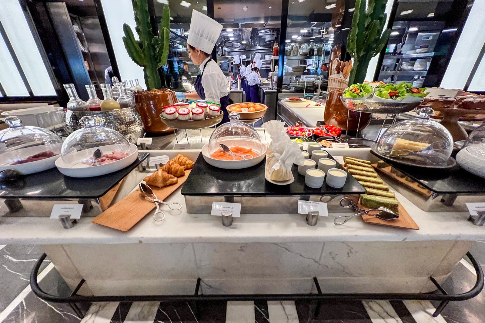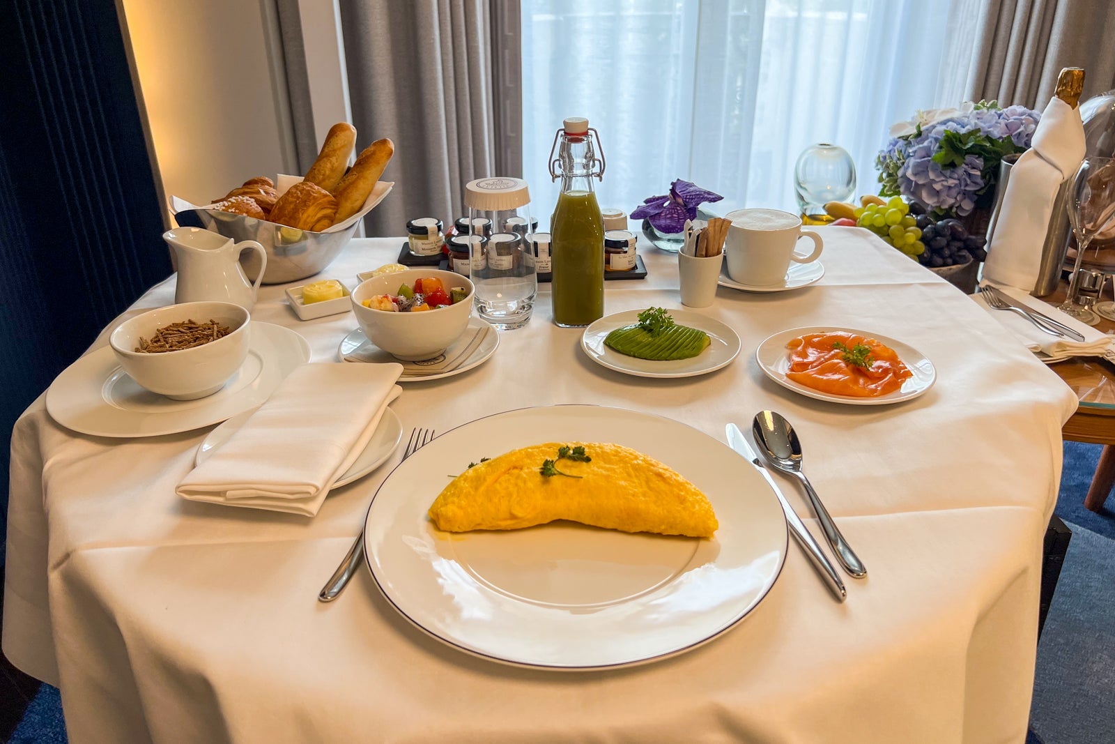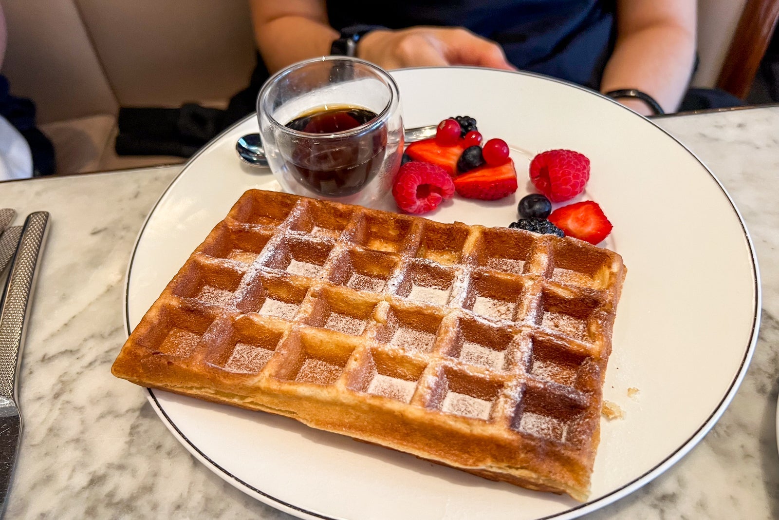 I tried a sumptuous waffle with Chantilly cream and berries one day, and various egg dishes with sides like avocado and crispy bacon or smoked salmon the others. A room service breakfast order arrived within 20 minutes still hot and beautifully laid out on a rolling table, which was collected within five minutes of my calling down.