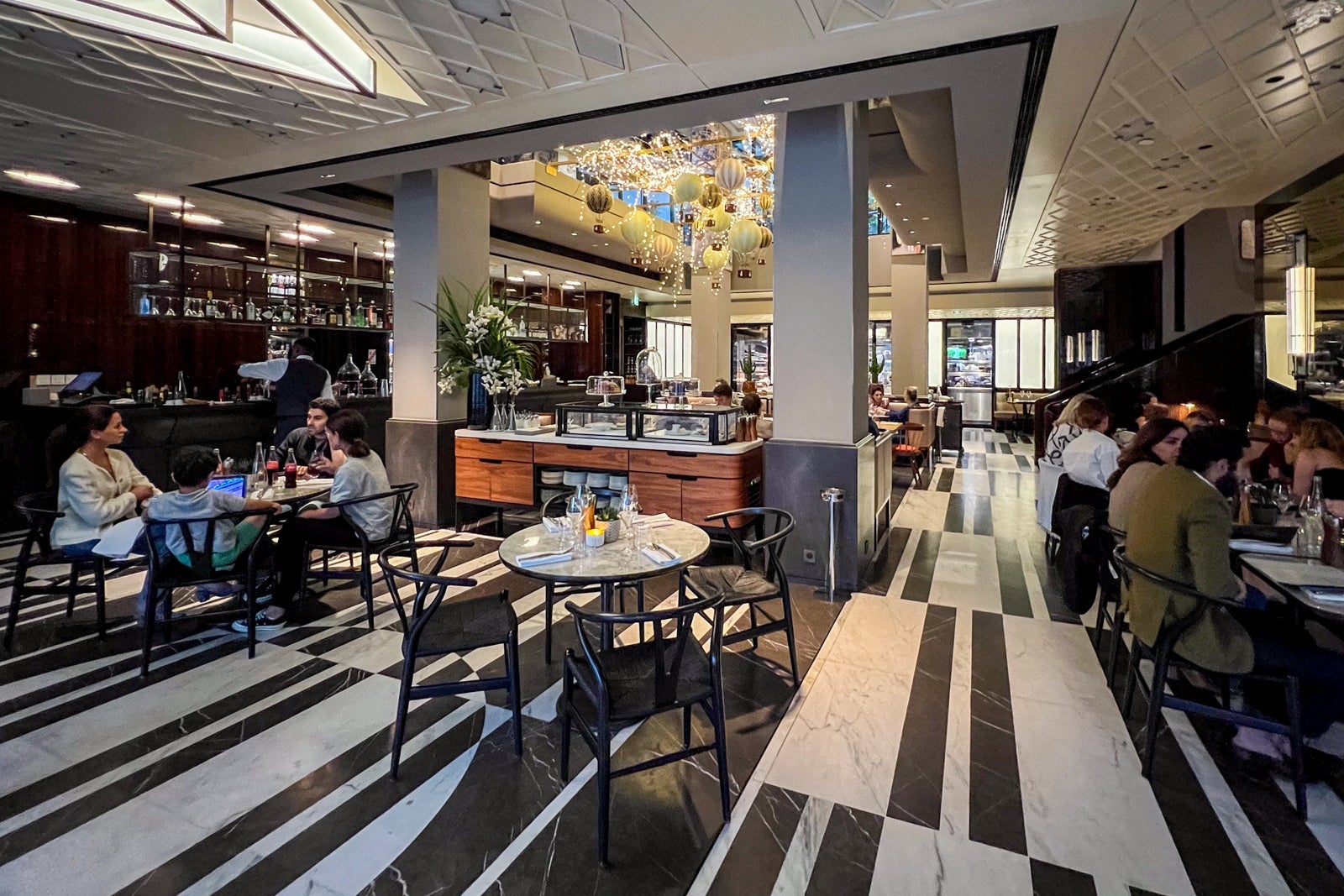 Bathed in multicolored light from its painted-glass ceiling by artist Fabrice Hyber, Le Saint-Germain felt more like a chic library or salon, with comfortable seating vignettes and shelves with art pieces and books. The all-day menu here had some lighter options like avocado with quinoa and mango in a citrus dressing (26 euros, $29) as well as more substantial dishes from the brasserie menu, like grilled rib eye with potatoes (46 euros, $51). Afternoon tea service is available on weekends.