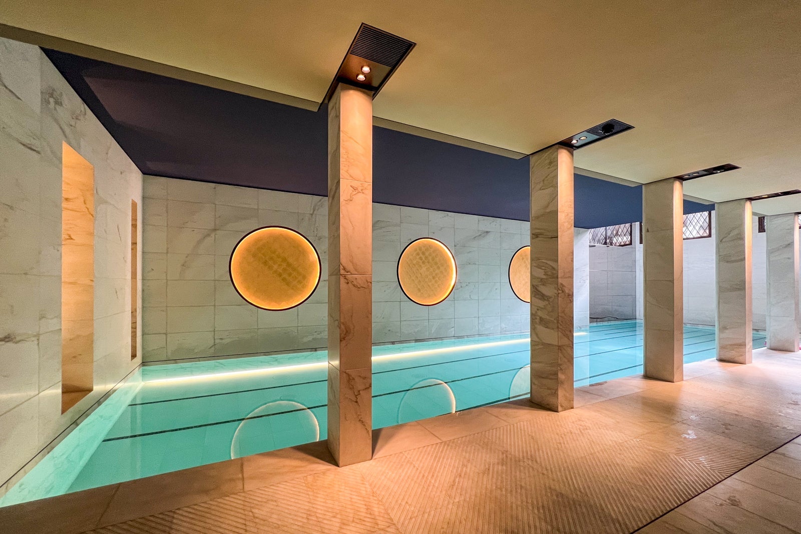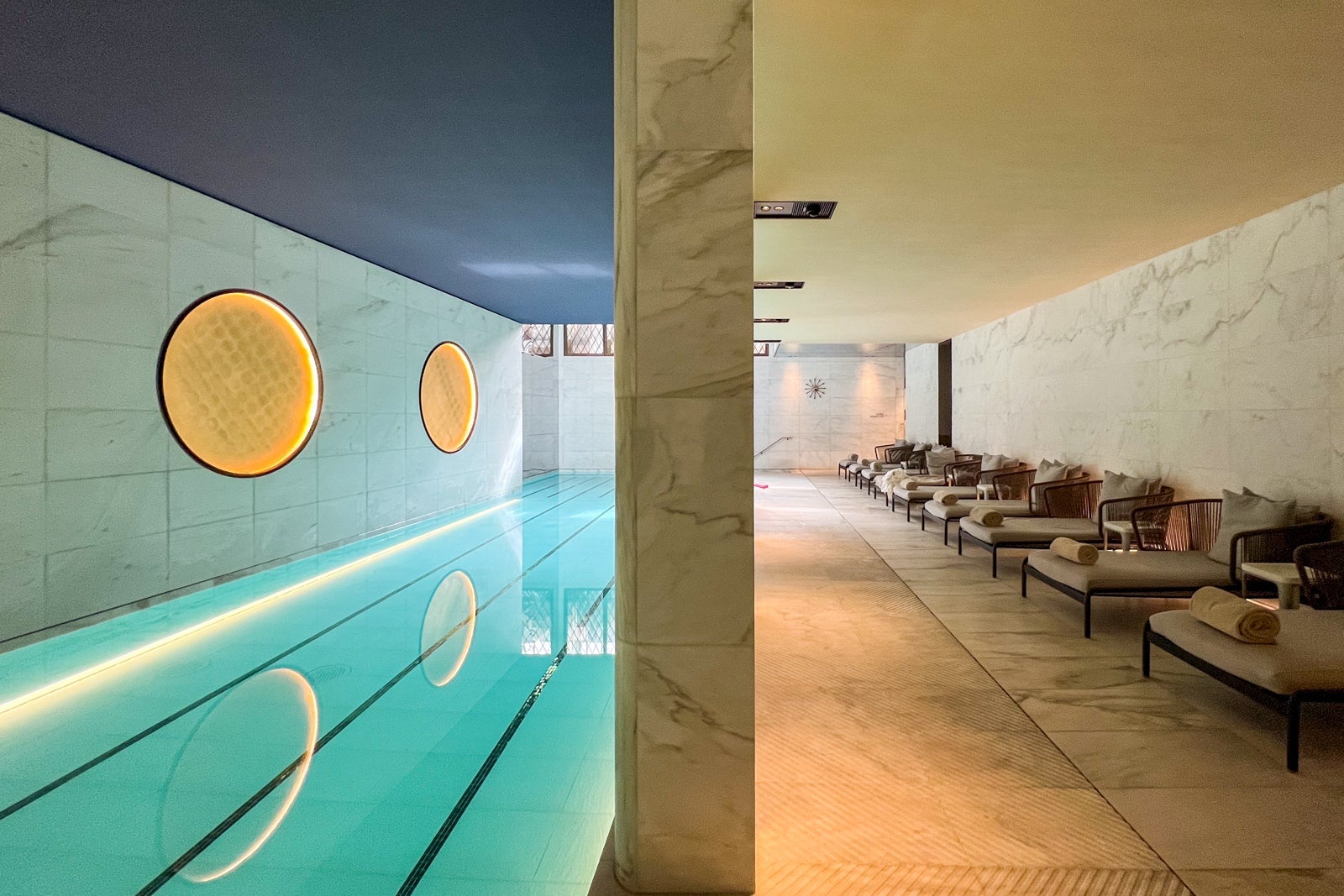 There's also a stunning 17-meter subterranean lap pool lined by loungers and with dramatic lighting effects to evoke a sense of tranquility. Next to it is an area with a steam room and a hammam.