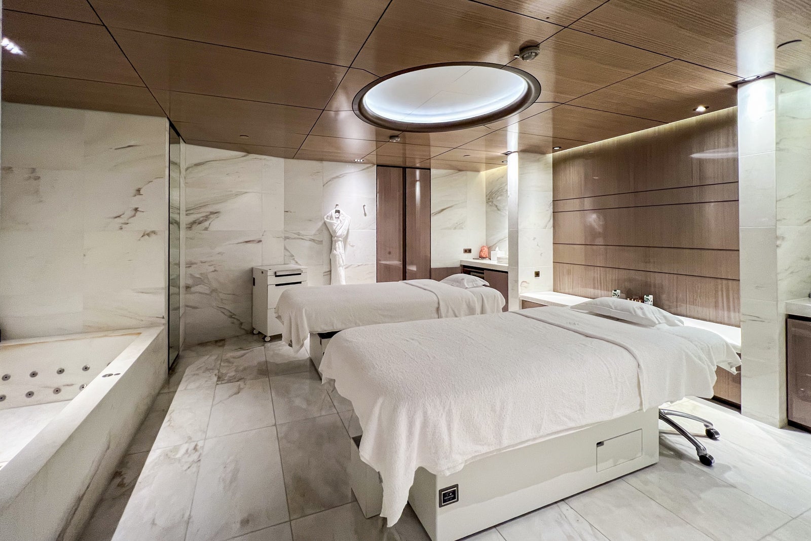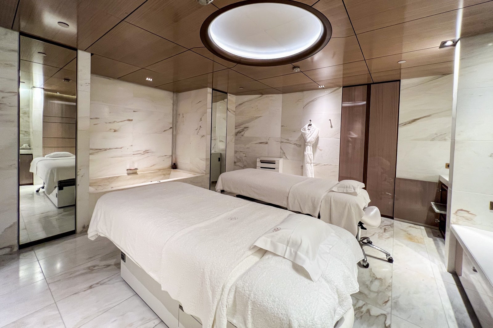 The spa itself has six treatment rooms including a large couples one, where guests can enjoy signature experiences like the anti-aging and radiance facials with Swiss Cellcosmet products and beauty treatments with the hotel's custom line of U Beauty products.