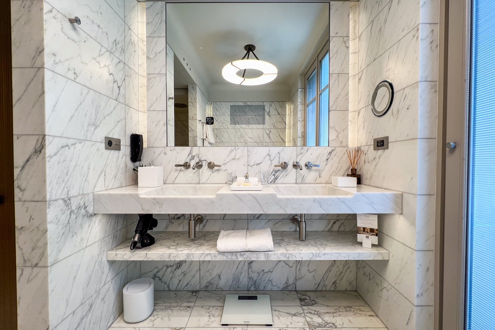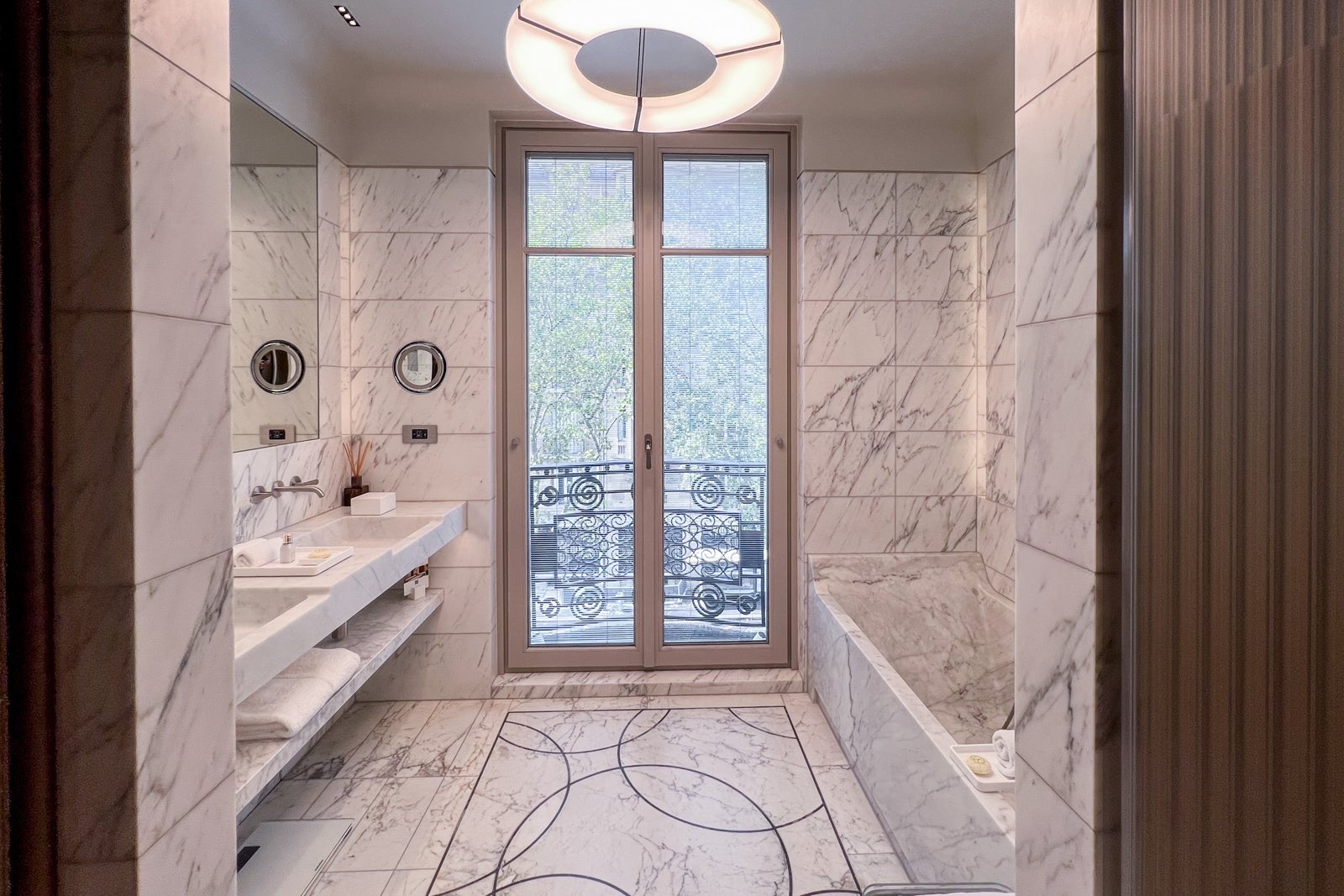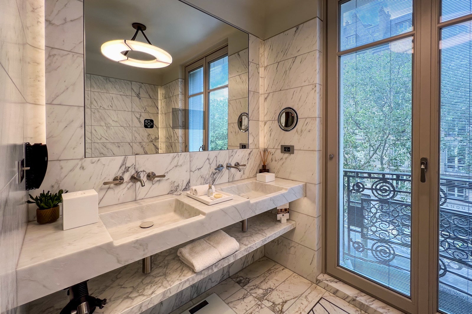 - Contemporary, spacious rooms (even standards are 355 square feet) with iconic views, Carrara marble bathrooms and Parisian flourishes.